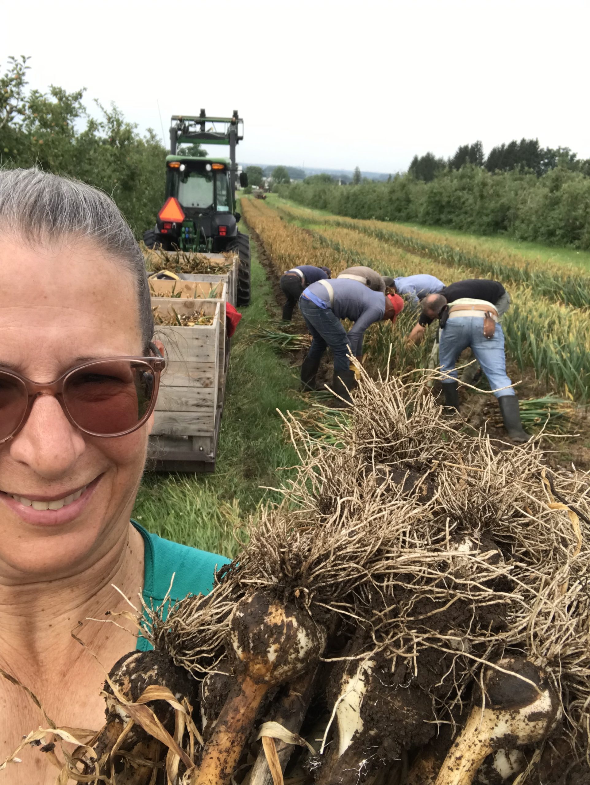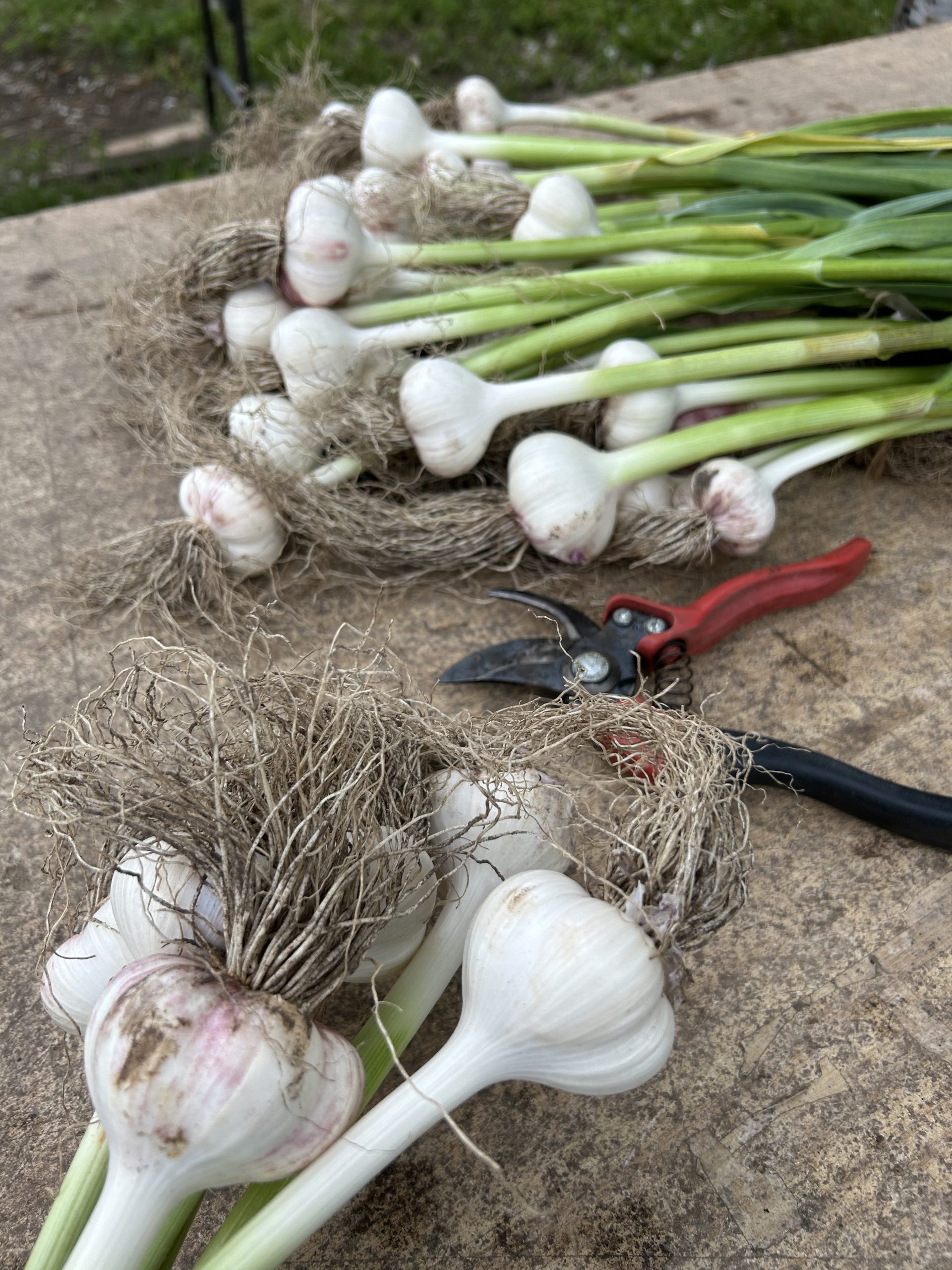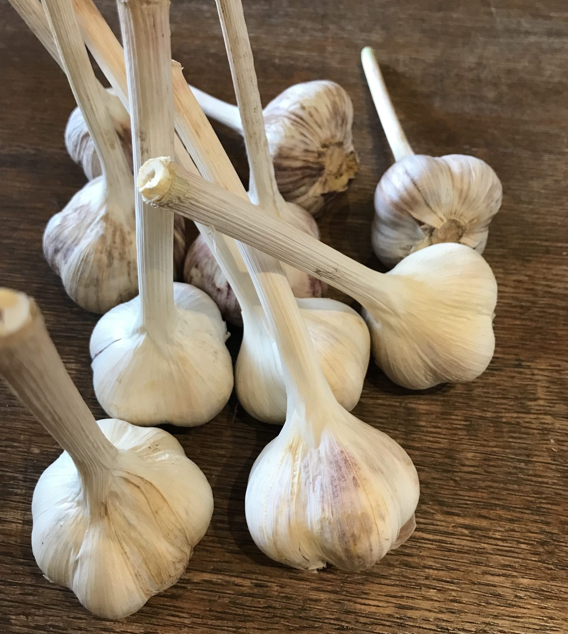 Au printemps, la gousse d’ail plantée en terre germe et fait une tige et des feuilles. L’ail a besoin d’un pouce d’eau par semaine pendant toute la saison. Cesser les arrosages 2 semaines avant la récolte. Tenez le sol exempt de mauvais herbes. En juin, une délicate tige sort pour éventuellement faire une fleur. C’est cette tige enroulée, accompagnée du bouton de fleur que nous appelons : fleur d’ail. Cette tige et le bouton floral sont comestibles. Récoltez les fleurs d’ail lorsqu’elles font un tour et demi, avant que la tige ne se redresse, en général vers la mi juin. Le bulbe aura ainsi plus d’énergie pour grossir.